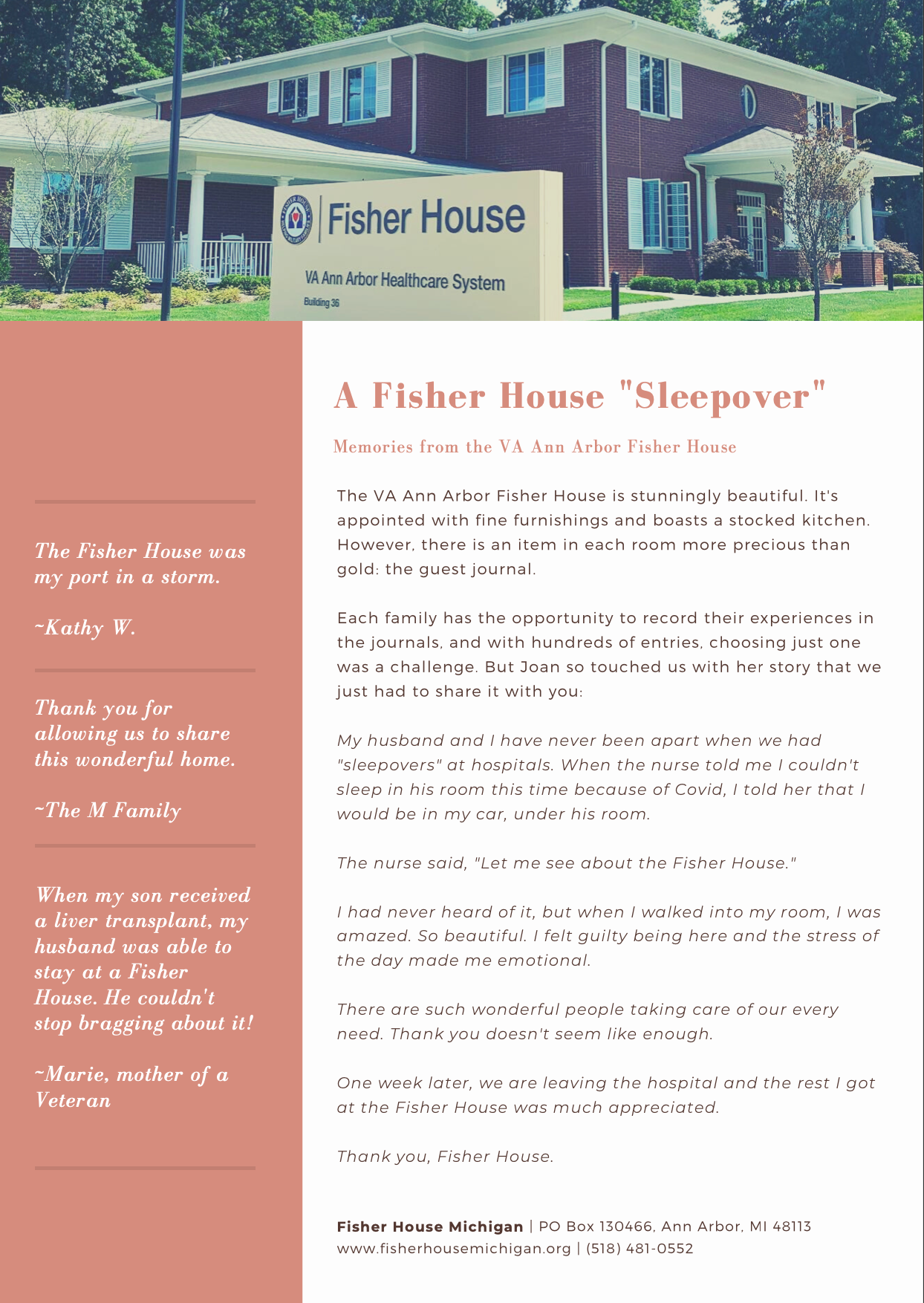 As Michigan’s FIRST Fisher House opened in June 2020, we have been blessed with hundreds of stories from grateful families. In the quarterly “The Blessings Business,” we will share some of these stories with you — because a family’s love is good medicine, and you’re making that medicine possible for thousands of Veteran families in Michigan.